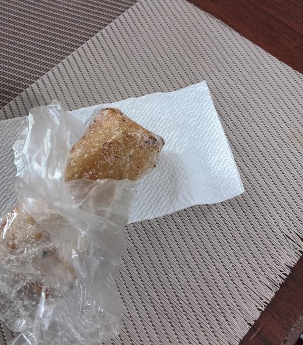 バナナのおやつ。春巻きの皮のようなものにバナナが包まれていて、周りがサクサクで子ども達にも好評♪