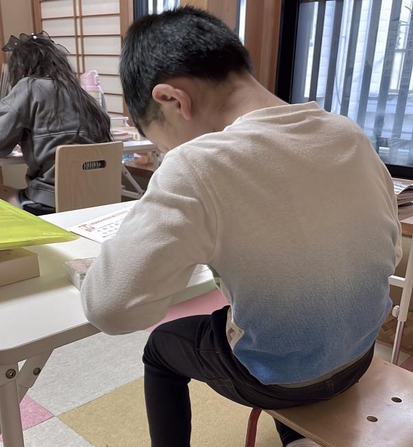 新年度初日はまだ学校が始まっていませんでした。算数の予習を準備していたら、生徒さんから「去年度の復習をしたい!」との要望。予習に取り組んでもらっている間に、昨年度の復習を準備しました。こんな風に、本人の要望に合わせて柔軟に対応できる点がこのコースの良いところです。