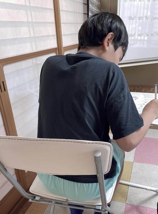 目で見て、耳で聞いて、口に出してきた単語を、“自分の手で書く”というステップが、意外と新鮮で楽しいみたいです。(しかもホワイトボード!みんな書きたい☆)