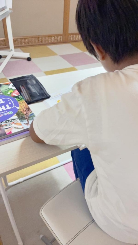 レッスンでは、ボール投げゲームをしながらとにかく何度も口に出し、自然と過去進行形が身につくように練習しました。さらに、たくさん発話した後は文章を書いて整理し、頭の中に定着させました。